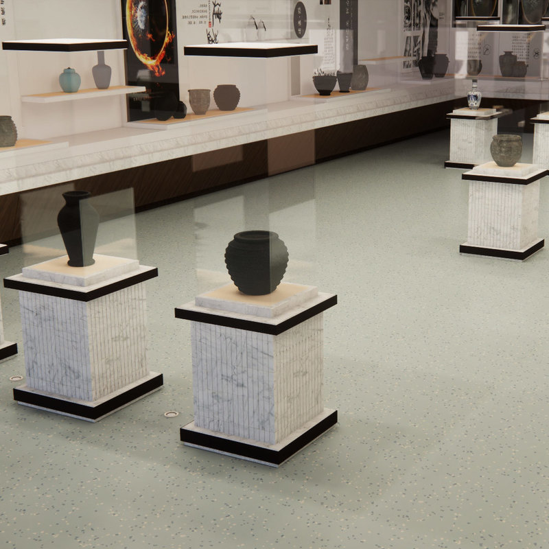 Rivestimento RUR: facile manutenzione, resistente alle macchie, non tossico (uso museale). Eco: plastificante 100% a base biologica, ≥75% materiali sostenibili. Basso TVOC (<10μg/m³ dopo 28 giorni): protegge i manufatti. Anima in gomma omogenea: durevole, stabile in aree ad alto traffico. |