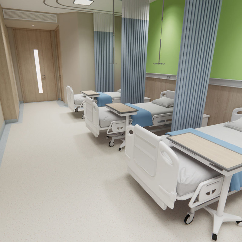 ✔️Sicurezza e comfort: Le texture antiscivolo e le proprietà di riduzione del rumore migliorano il recupero del paziente, mentre il supporto ammortizzato riduce l'affaticamento del personale.