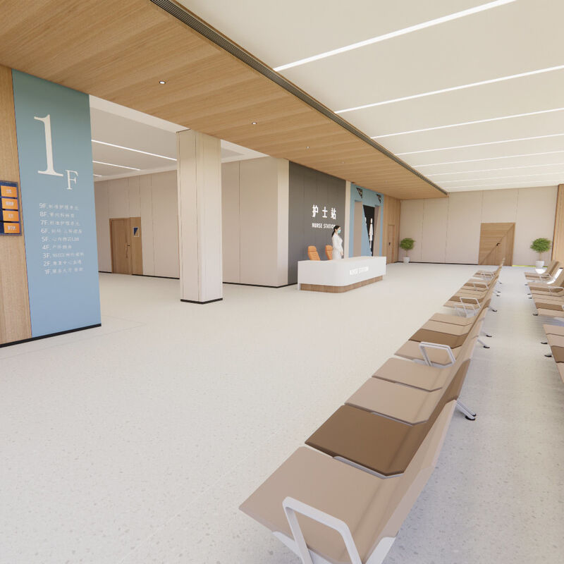 Sala d'attesa ambulatoriale con traffico elevato pavimentazione antibatterica in legno LVT