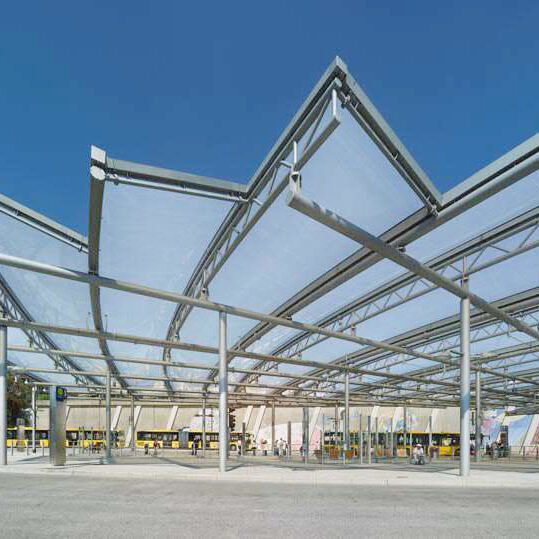 This PVDF building membrane has standard thicknesses 1.0mm to 1.03mm, widths 1000mm to 1800mm and lengths 50m 100m. Customizable colors are offered. It boasts excellent weather UV resistance self cleaning high strength flame retardancy and heat insulation, and is workable for stadium roof wall and tension membrane structure.