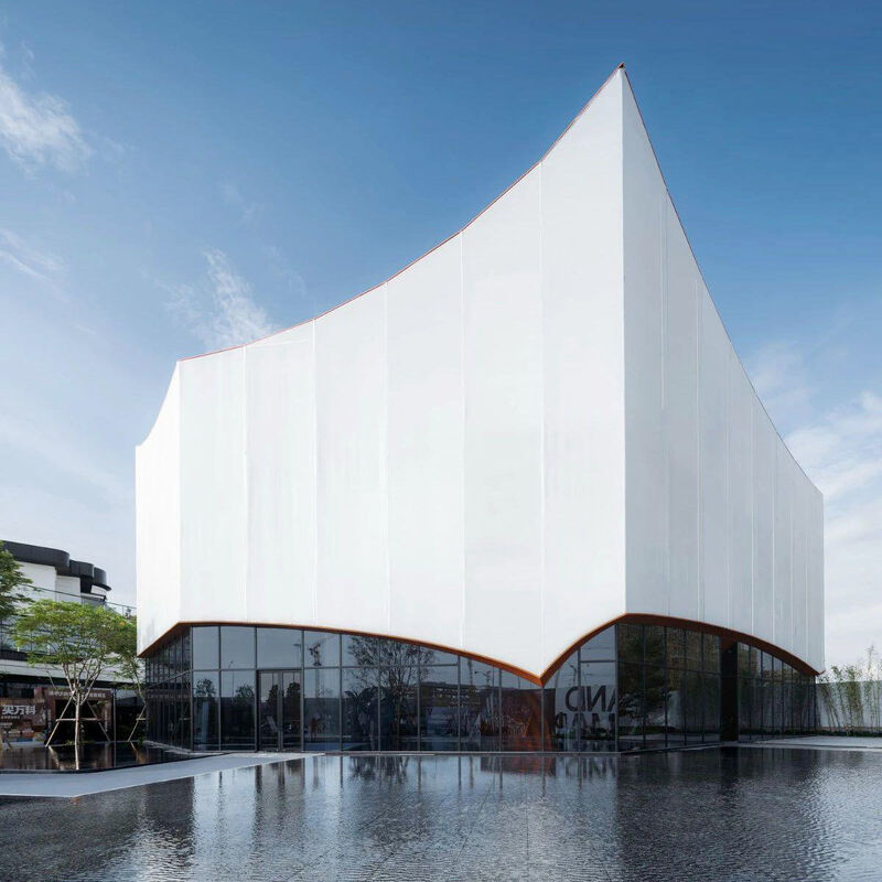 This PVDF building membrane has standard thicknesses 1.0mm to 1.03mm, widths 1000mm to 1800mm and lengths 50m 100m. Customizable colors are offered. It boasts excellent weather UV resistance self cleaning high strength flame retardancy and heat insulation, and is workable for stadium roof wall and tension membrane structure.