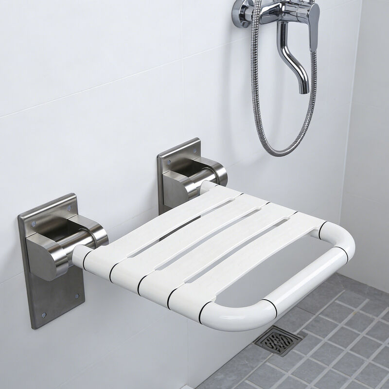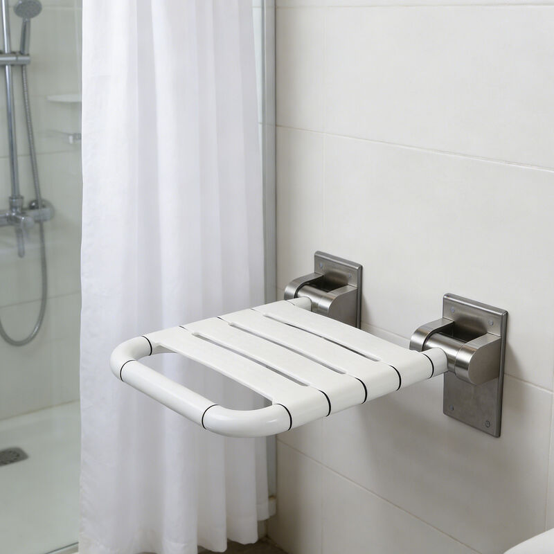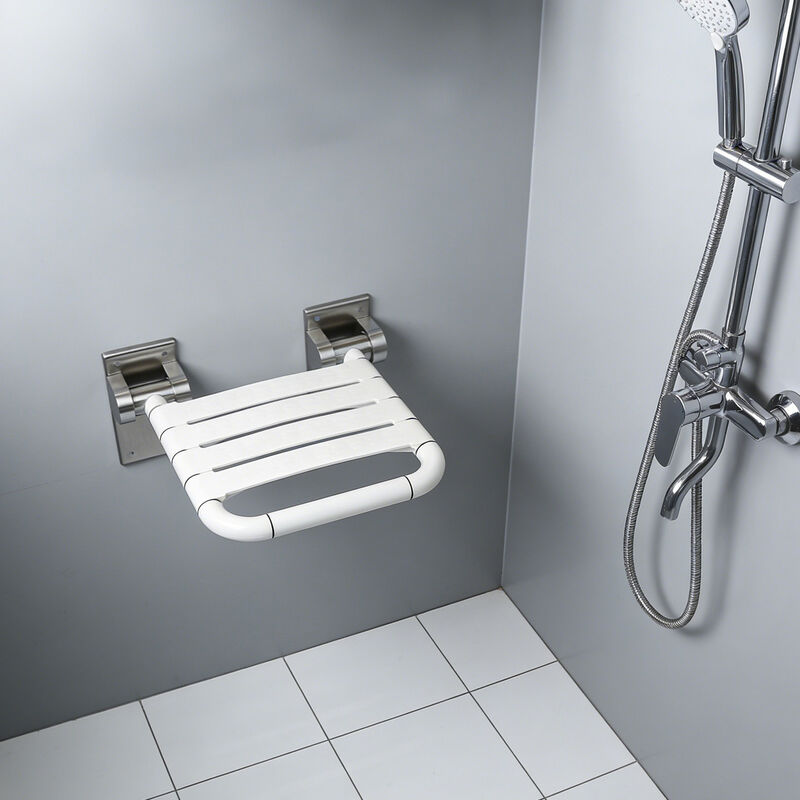 Staffa in acciaio inossidabile 304, sedile in ABS antiscivolo, pieghevole a 90° per risparmiare spazio, montato a parete per stabilità. Progettato per anziani e donne incinte, portata 150 kg, bagno più sicuro.