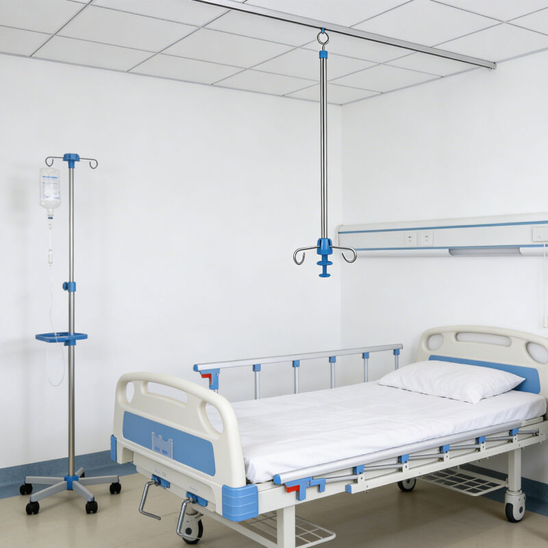 Made of 304 stainless steel for sturdiness and corrosion resistance. Telescopic design flexibly adapts to bed heights, with 4 hooks to hold multiple IV bags. Easy to install, stable and durable—ideal for efficient hospital ward care.