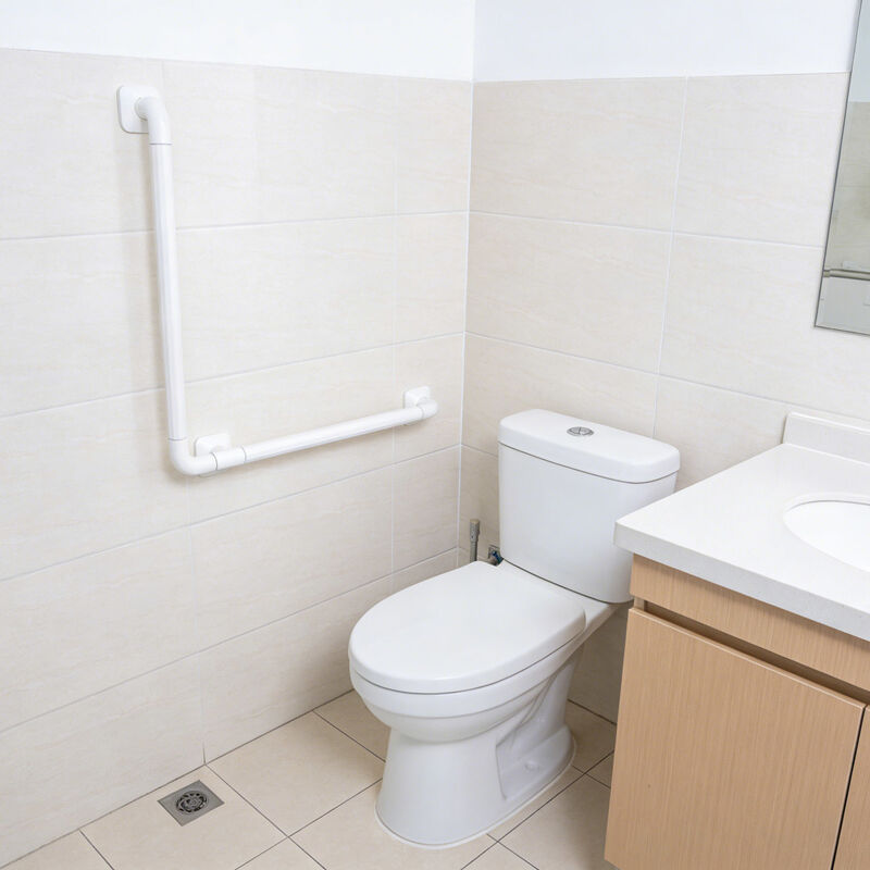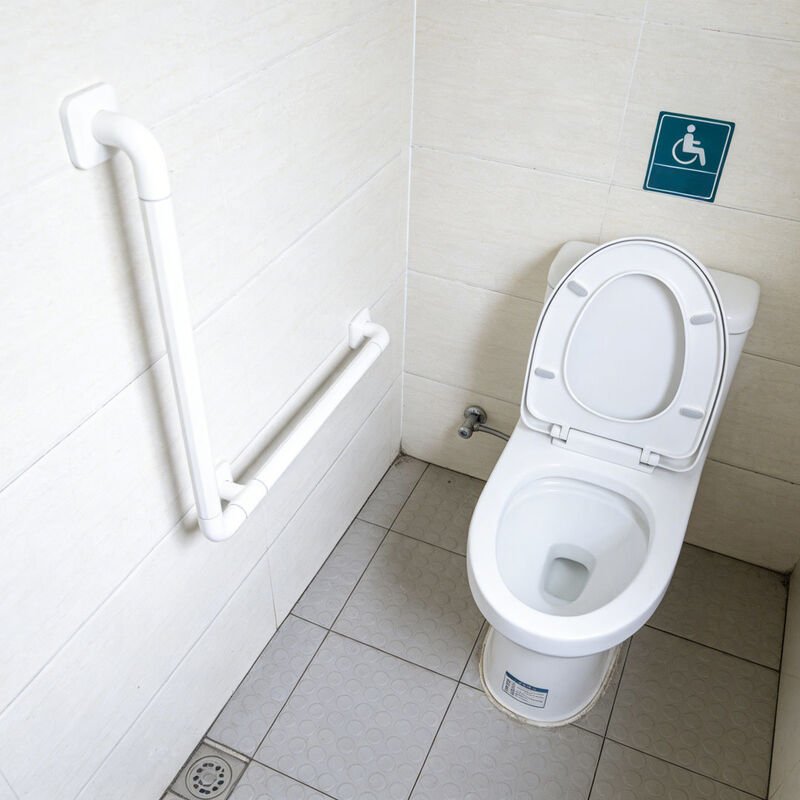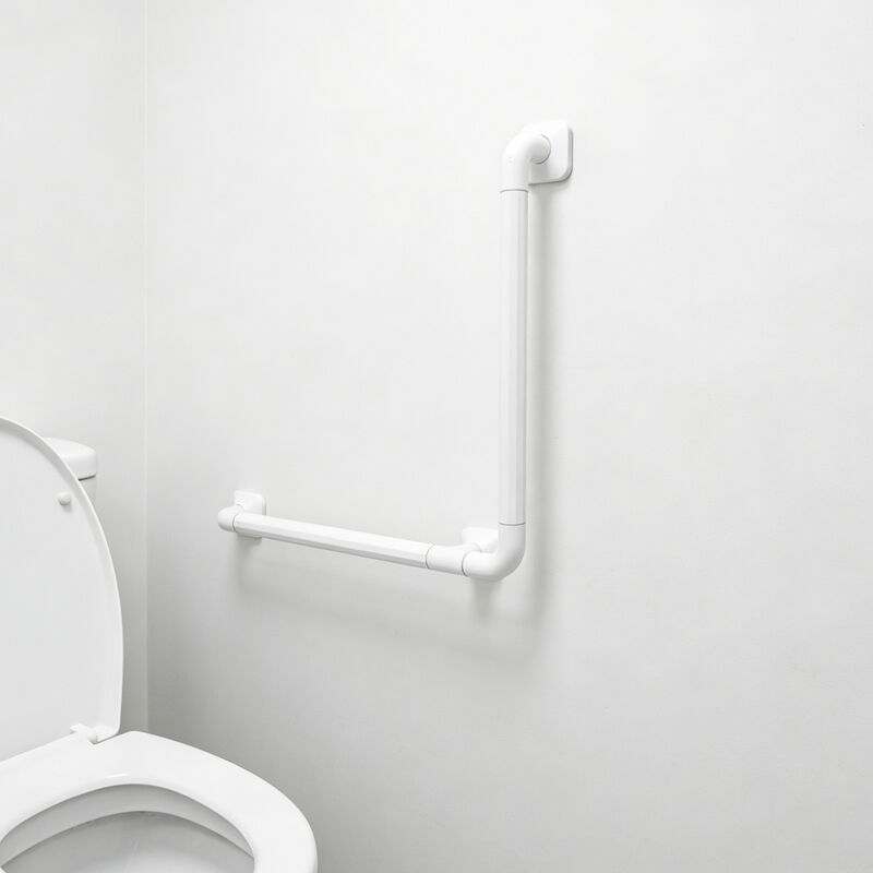 L-Shaped White Nylon Wall Mounted Grab Bar - Non-slip, 150kg load capacity, waterproof. Ideal safety handrail for bathroom, toilet, shower, elderly, disabled, hospitals and nursing homes.
